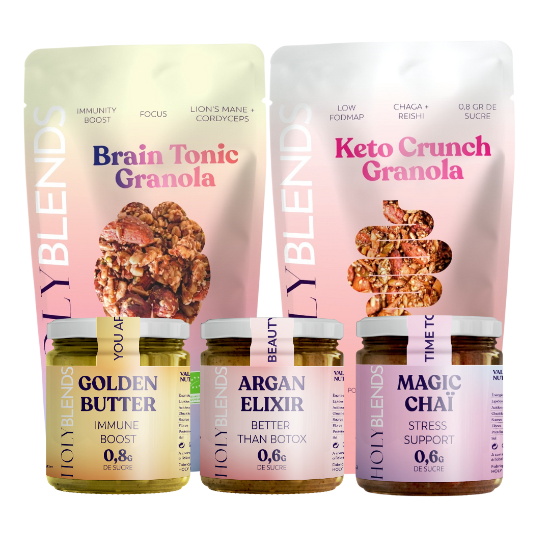 Tous nos produits sont uniques en France : 0 sucre, 0 avoine, clean-label et infusés aux plantes adaptogènes qui aident votre corps à mieux gérer le stress et l’inflammation.