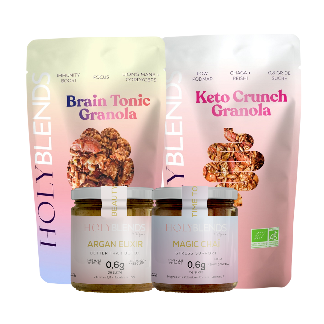 • Deux paquets de granola: Keto Crunch, Brain Tonic au choix.